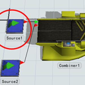 FlexSim有匹配的容器及內容物後,才放入Combiner進行打包
